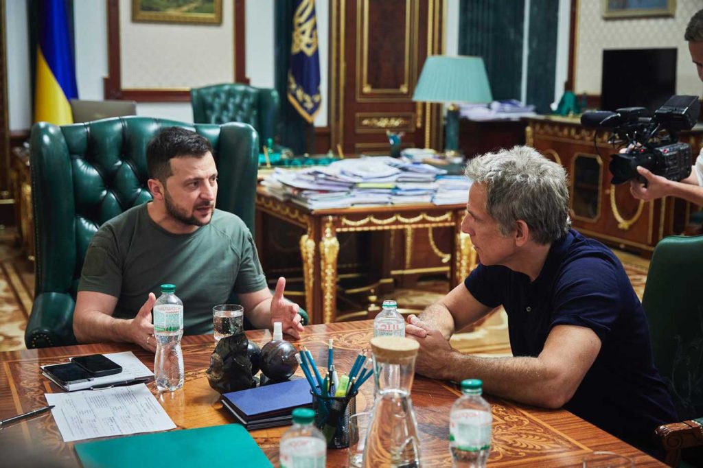 The world-renowned comedy actor from films such as ‘Zoolander,’ ‘A night at the Museum,’ and ‘Meet the Parents’ joined the comedian-turned-politician, President Volodymyr Zelenskky, at Ukraine’s Presidential Palace to have a direct conversation.