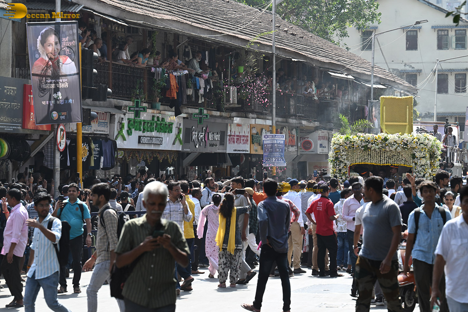 Pictures from Asha Bhosle’s Antim Darshan – attended by Sachin Tendulkar, Jackie Shroff, Tabu, Riteish Deshmukh, Eknath Shinde, and others.