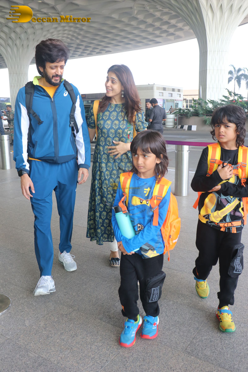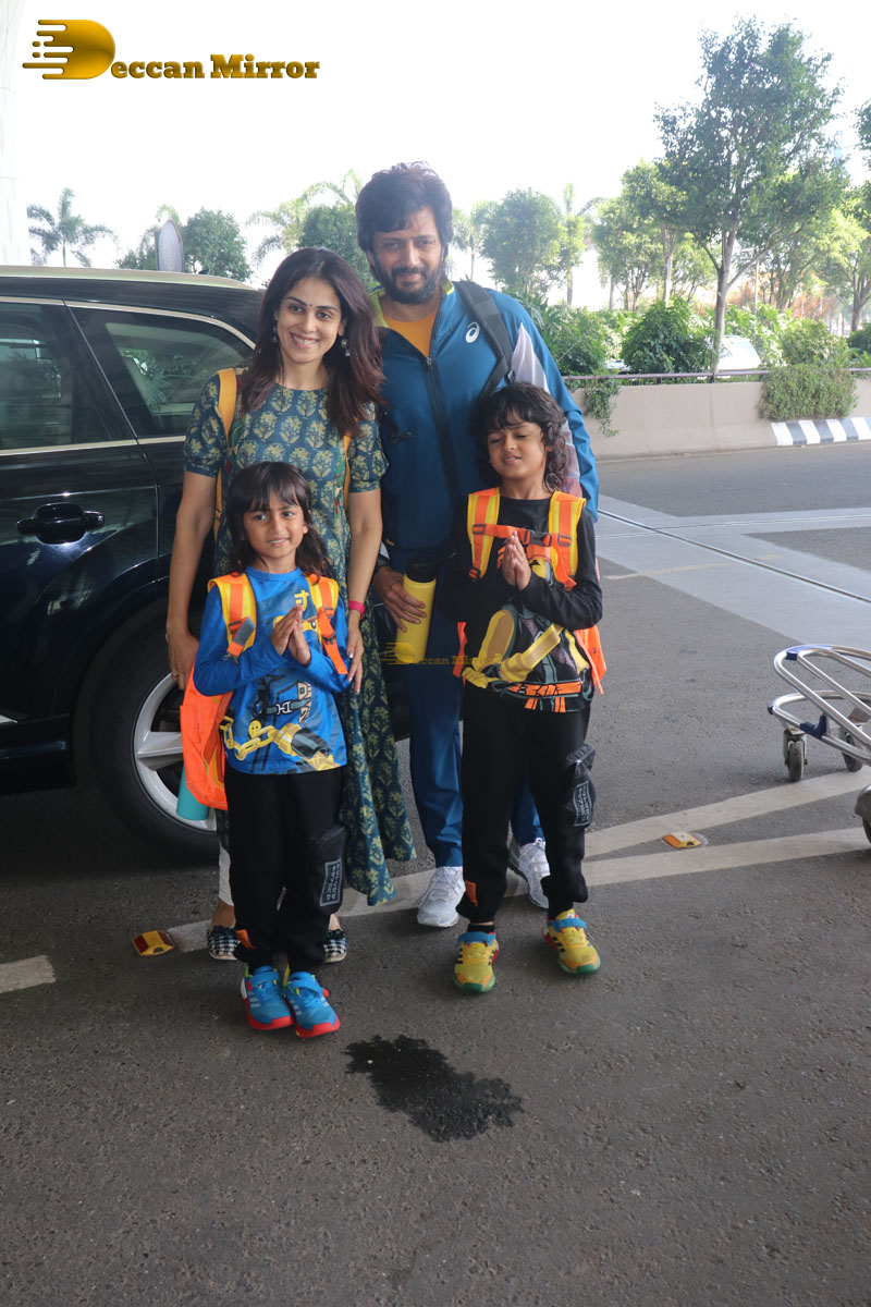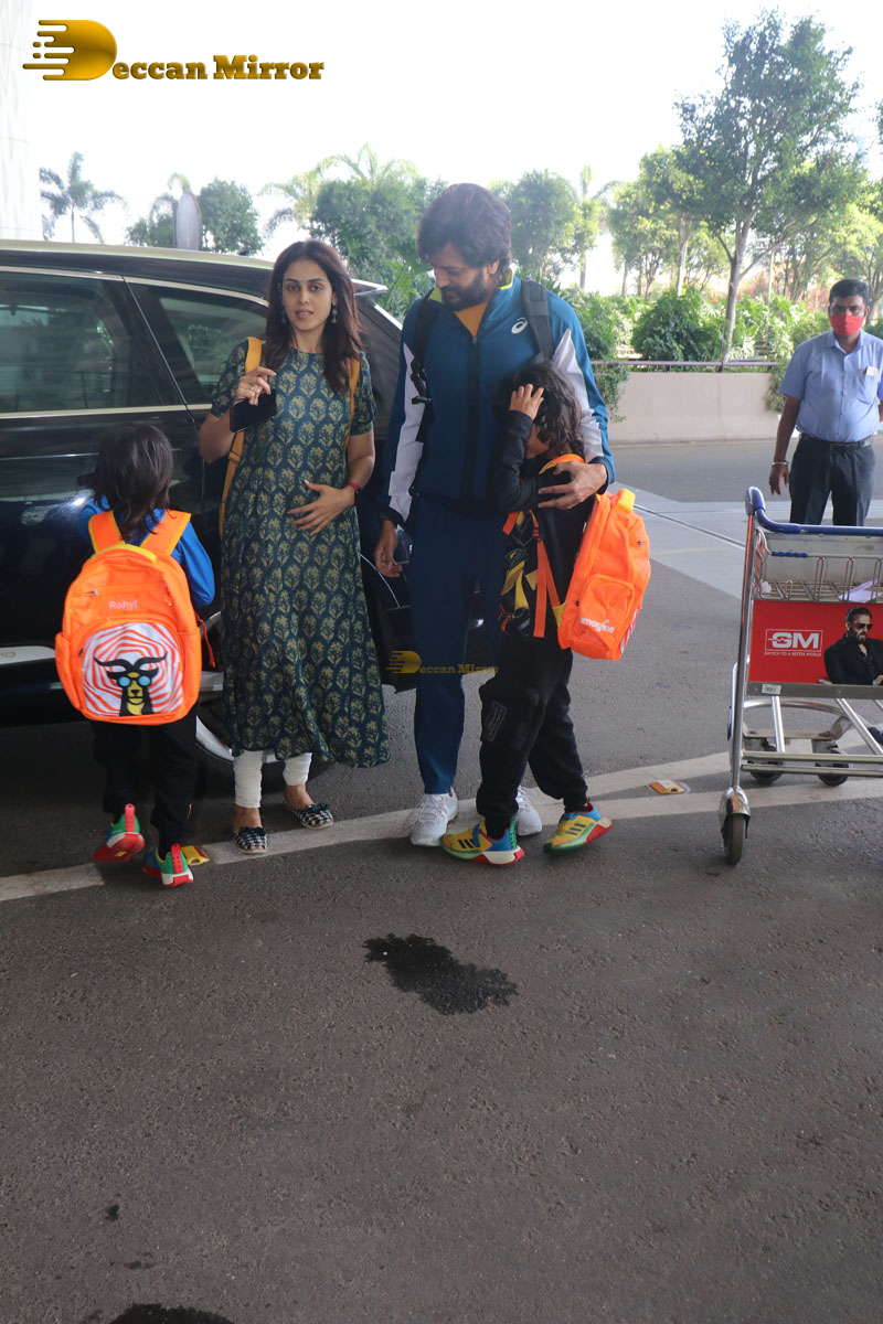 Celebrity Couple Riteish and Genelia Deshmukh spotted with their children at the Airport