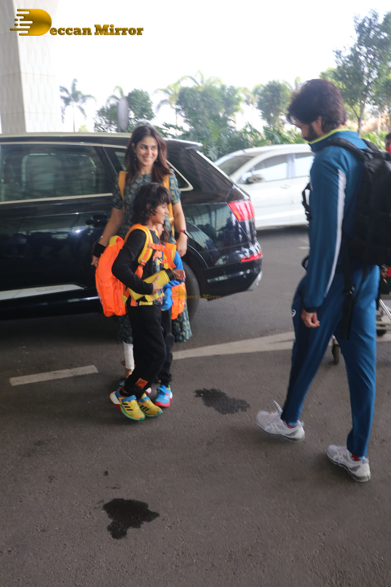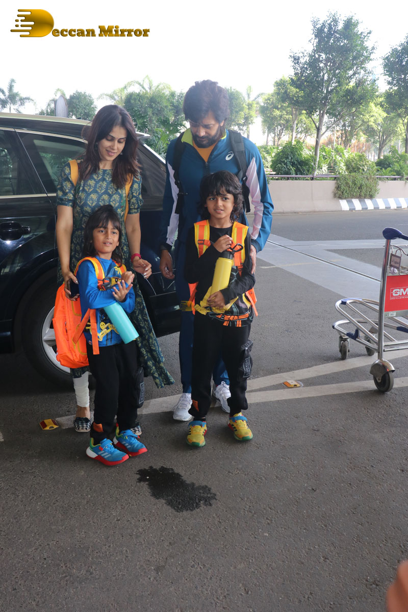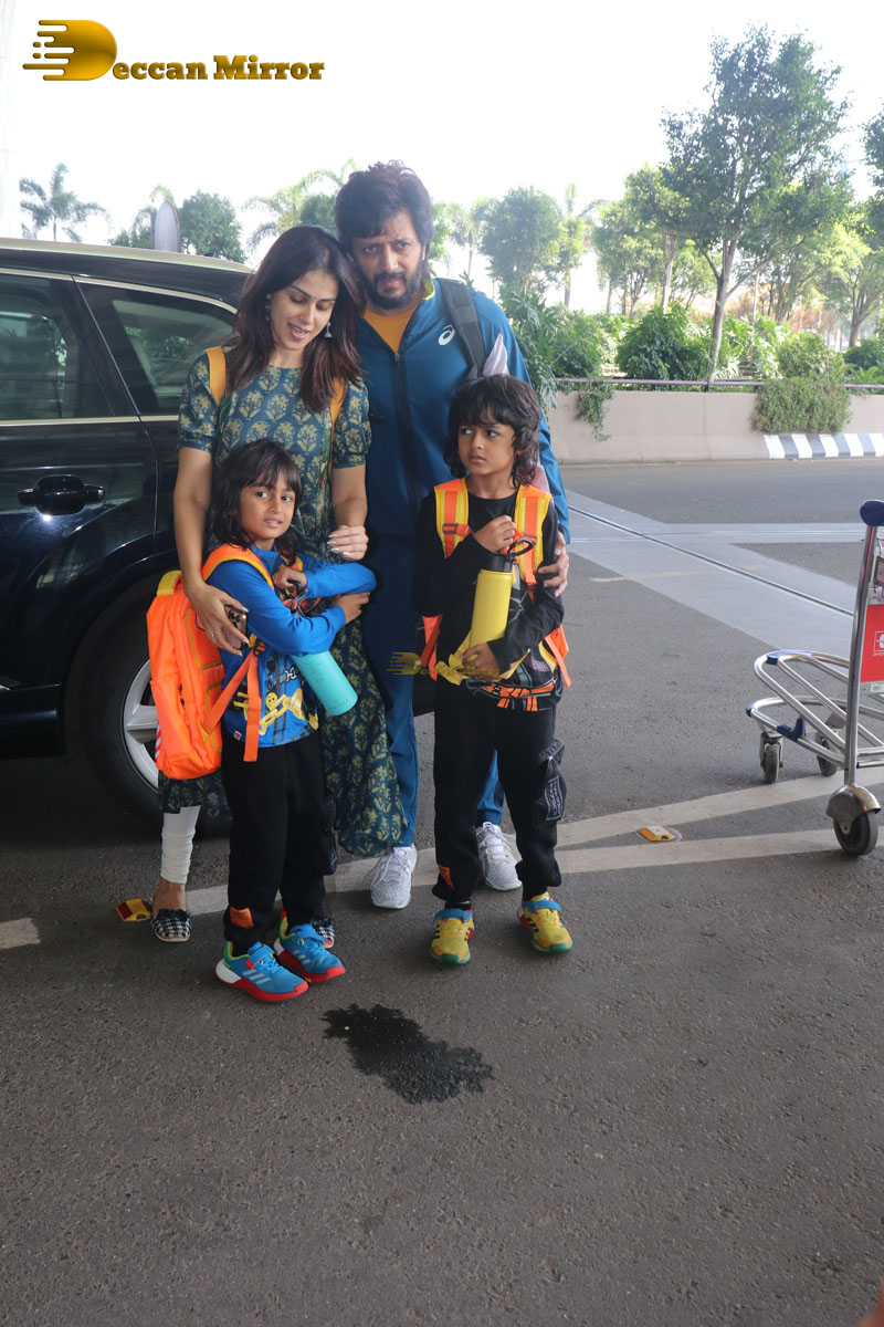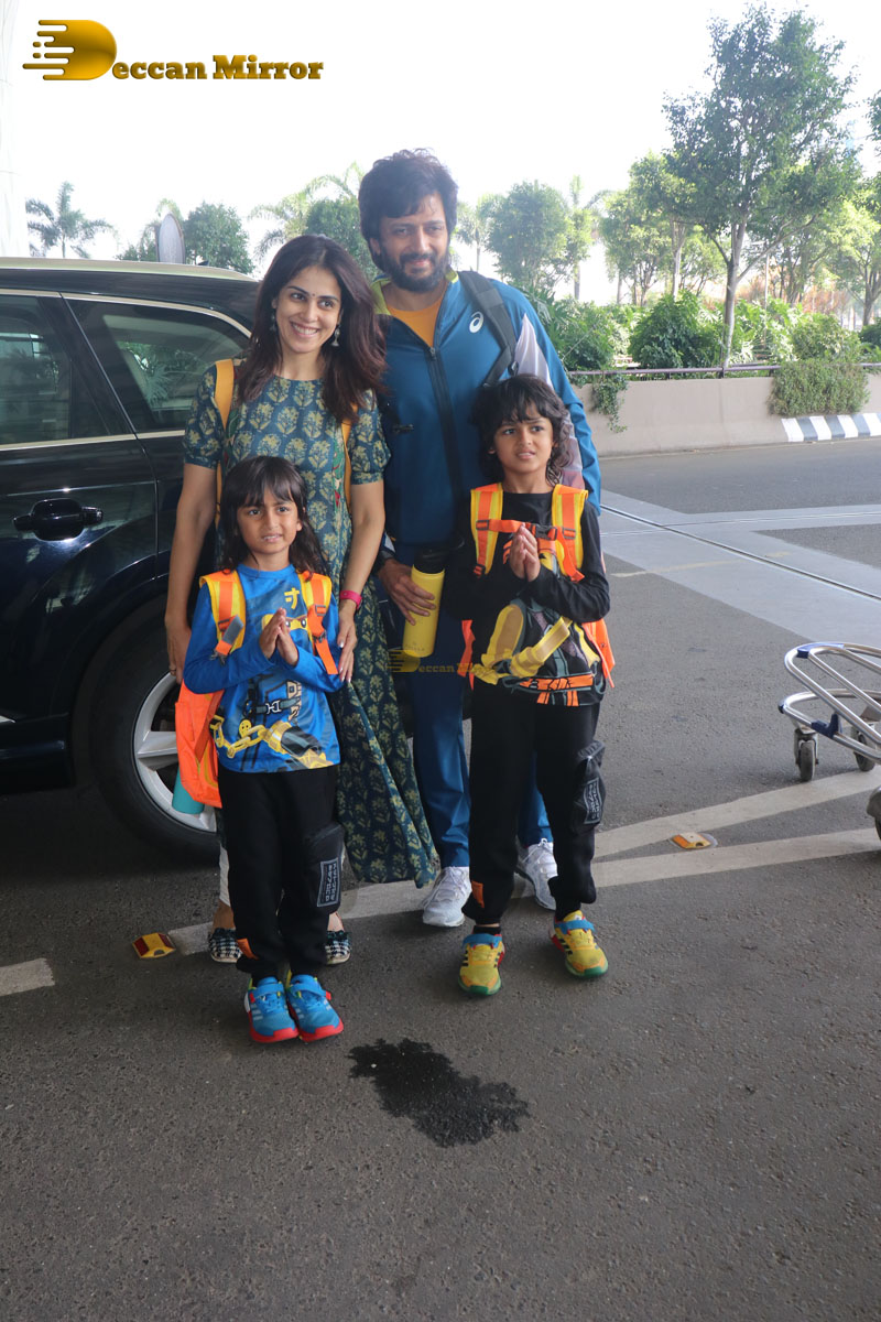 Celebrity Couple Riteish and Genelia Deshmukh spotted with their children at the Airport