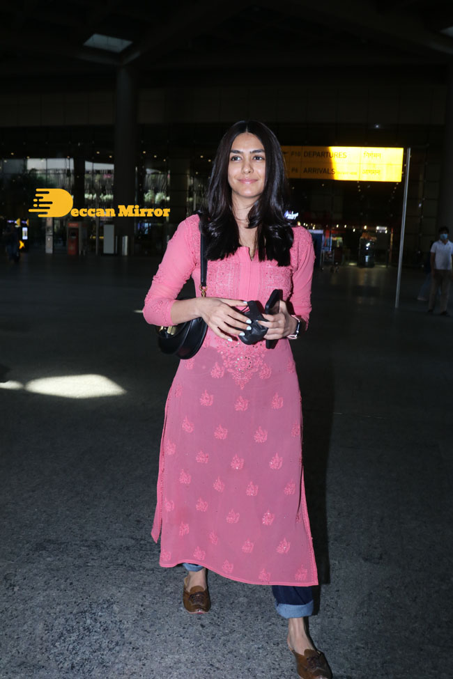 Bollywood Actress Mrunal Thakur was spotted at Mumbai Airport on March 5, 2022