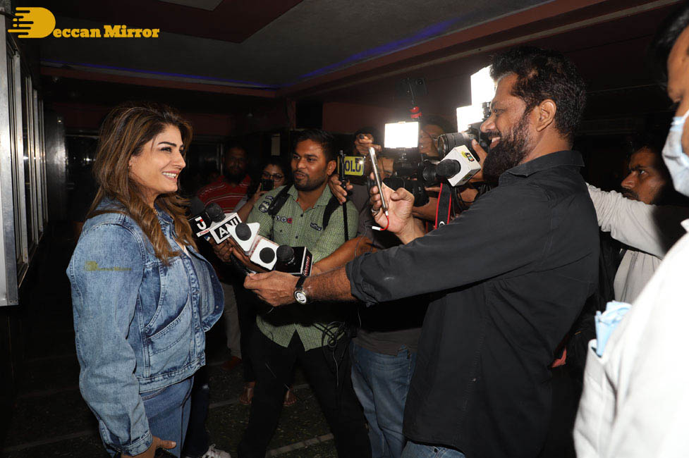 Bollywood Actress Raveena Tandon, promoting the film KGF 2, greeted the crowds outside G7 Multiplex in Mumbai