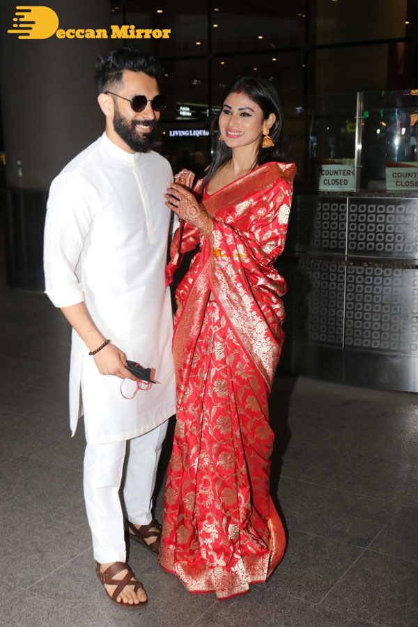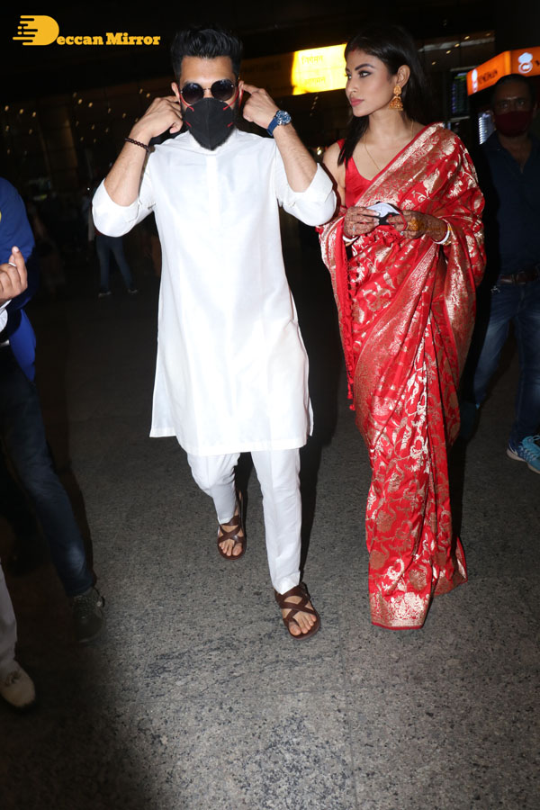 Newlyweds Mouni Roy and Suraj Nambiar return to Mumbai. See Pictures