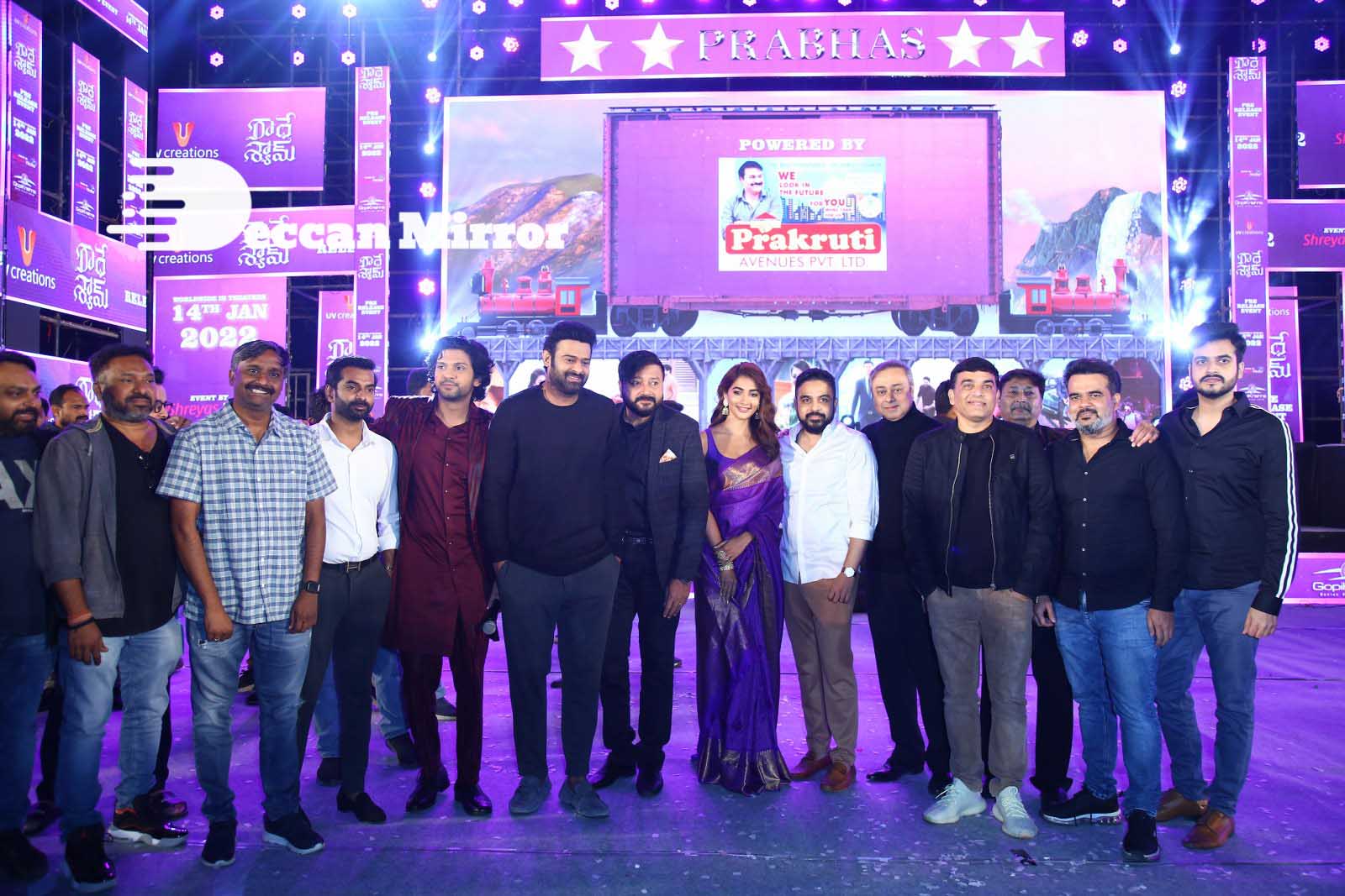 Pictures and Video of Radhe Shyam Pre-Release Event – attended by actors Prabhas, Pooja Hegde, Krishnam Raju, Director Radha Krishna, and others.