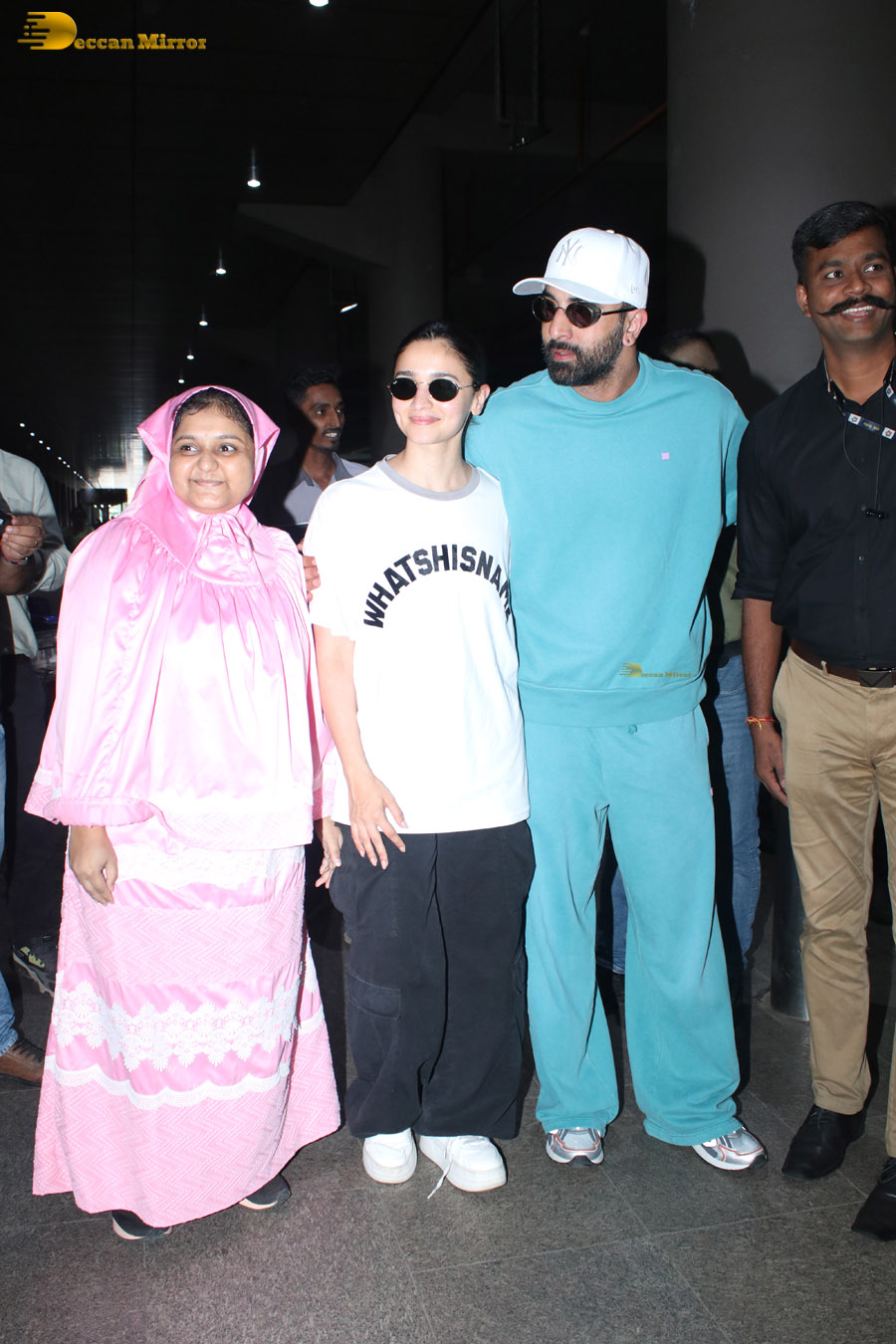 Celebrity couple Ranbir Kapoor and Alia Bhatt oblige fans for photographs at the Mumbai Airport.