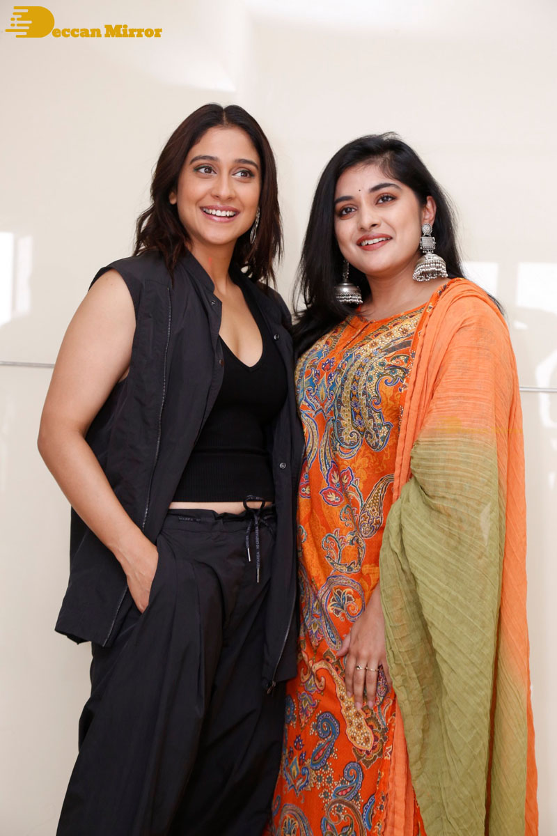 Regina Cassandra and Nivetha Thomas attend the press meet of the movie ‘Saakini Daakini’