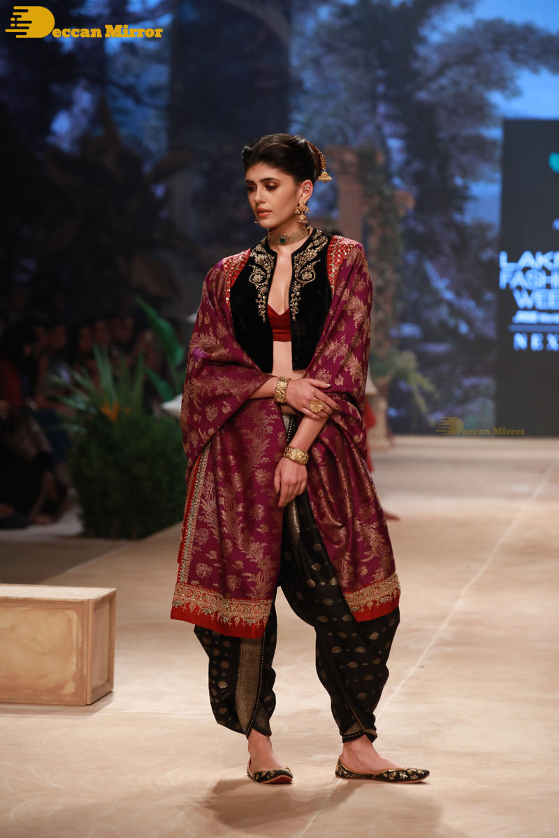 Sanjana Sanghi walks the ramp for Designer Anju Modi at Lakme Fashion Week 2022