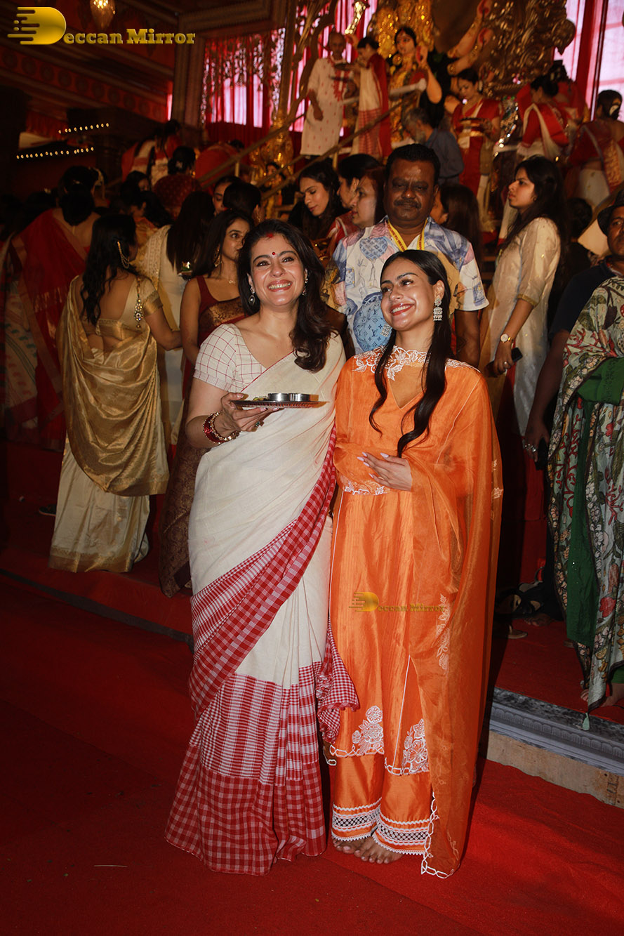 Pictures from Sarbojanin Durga Puja 2025 – attended by Kajol, Ajay Devgn, Tanishaa, Rani Mukerji, Alia Bhatt, and others.