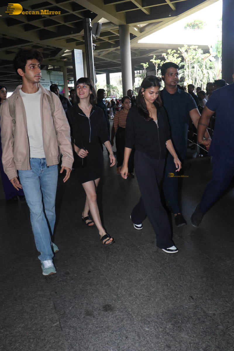 ‘The Archies’ cast Suhana Khan, Khushi Kapoor, and Agastya Nanda were spotted at the Mumbai Airport on June 20, 2023.