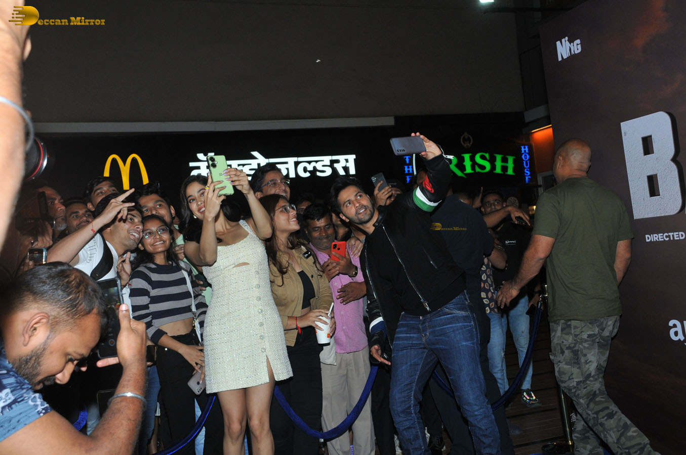 Varun and Janhvi interact with fans at Bawaal Screening